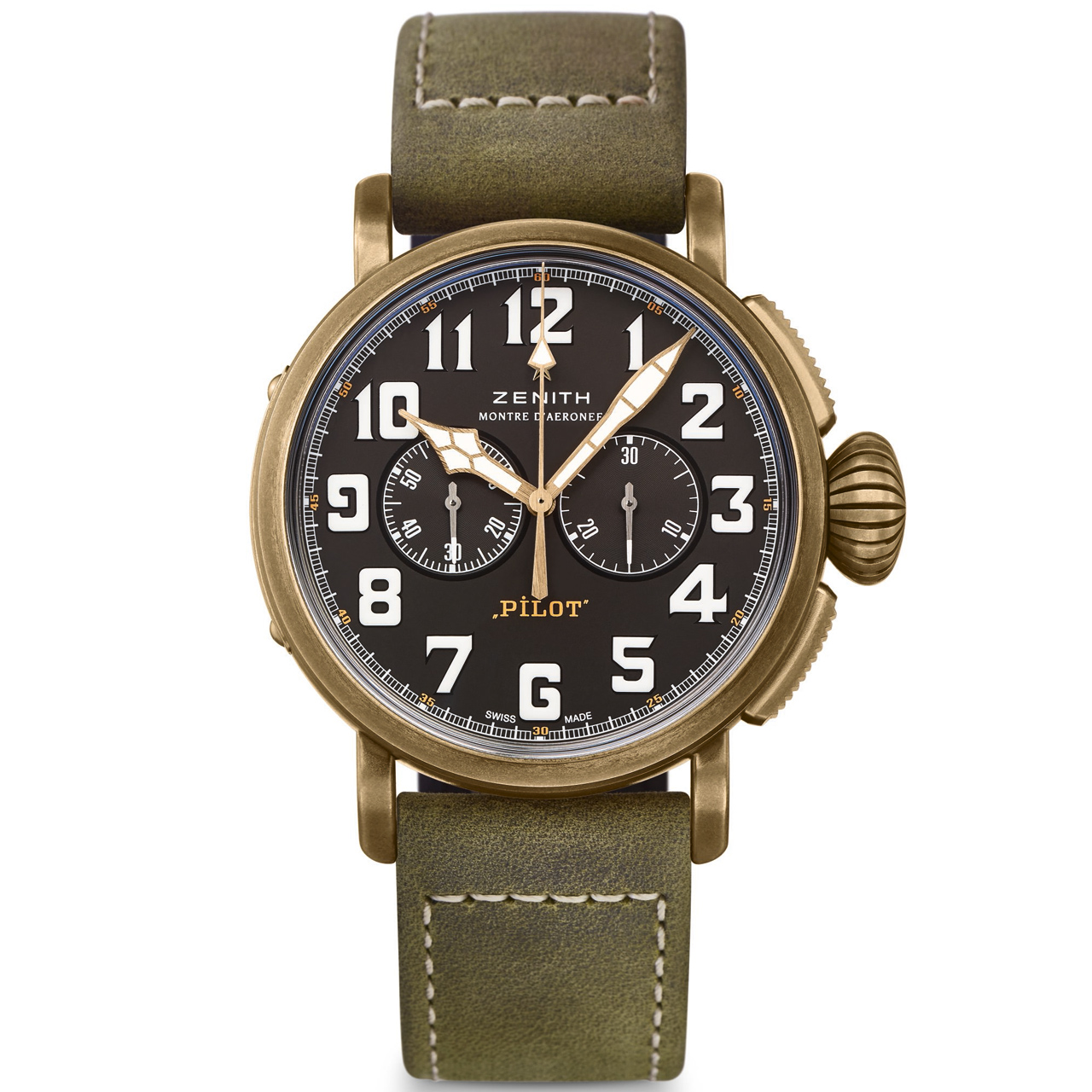 Today, Zenith keeps this incredible legacy alive with the Pilot Type 20 collection. The watch is a masterful nod to its past, blending vintage design with modern craftsmanship. It features oversized Arabic numerals, cathedral hands, and a large onion-shaped crown—a distinctive feature designed to allow pilots to adjust the watch while wearing gloves. It’s big, bold, and unapologetically rugged, echoing the look of cockpit instruments from a time when flight was daring and unpredictable.